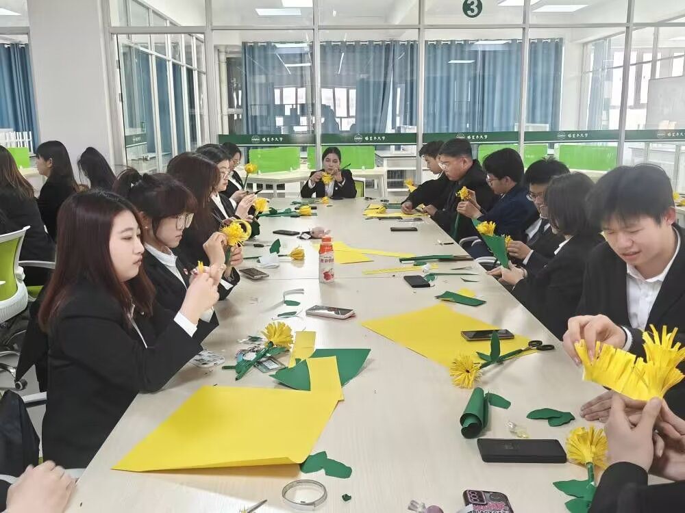 学生党员在老图书馆创客空间认真学习并制作所需纸花,以手工做花、献花的方式缅怀先烈,以情寄哀思。