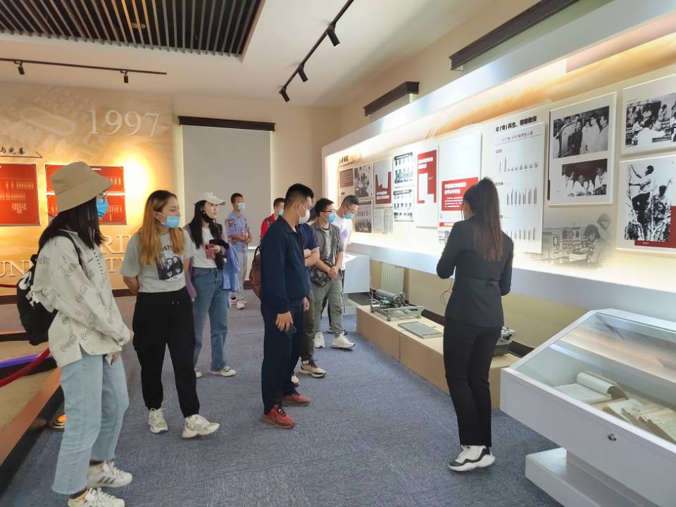 一走进学校的校史馆,学生们就被眼前独特的“教室”吸引。在讲解员的带领下,大家参观了校史观内的各个展室。