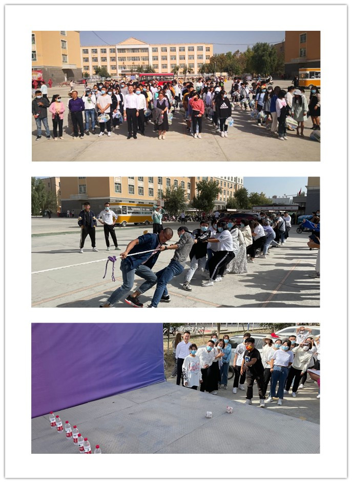 此次活动主要有两项。集体拔河比赛,充分体现了团结就是力量,在场师生现场组队,全部参与,大家热情高涨,秉持友谊第一,比赛第二的原则,用尽全力为自己队伍争取胜利,最后张文林、王才道老师组获得胜利。沙包保龄球活动,由5位教师加15名学生组成,共6队,在激烈的角逐中,轩静、万小霞老师组获得胜利。