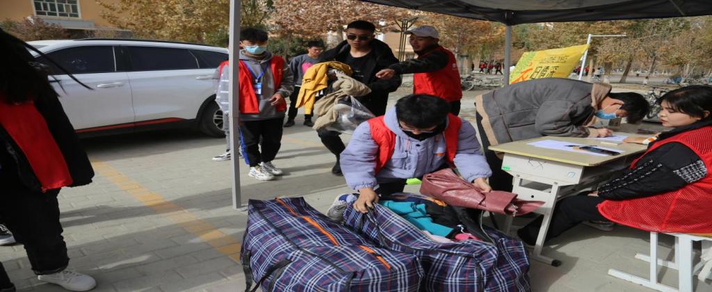 活动开始前,各个部门积极协调工作,互相配合,为本次爱心捐衣活动的顺利进行做好万全准备。活动伊始,前来捐赠衣物的师生络绎不绝,大家献出自己的爱心并写下祝福卡片,共同为贫困家庭的孩子们送去严冬的一份温暖。本次捐衣活动共收到师生捐赠衣物一千多件,并进行整理、分类、打包,与十四师青年志愿者服务队取得联系,计划统一邮寄到兵团第十四师,分发给当地的困难家庭。