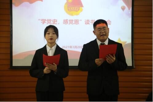 国家奖学金获得者、财务管理2018级1班贾梨花在分享读书心得时说:“通过学习党史,让我更能深刻到党这一百年来所经历的风风雨雨,也让我更加感党恩、听党话、跟党走,我们要更加珍惜现在这来之不易的生活!”