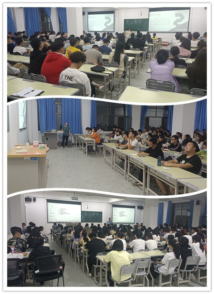 专业教育培训在新文科楼进行,工商系副主任李小锋、马信春同志负责对接并主持培训,工商系专业负责人王鹏程、张长江同志,财管系专业负责人马爱艳、黄德霞同志做了精彩讲演,各汇报人或采用精美的PPT、或案例推演的方式系统而又全面的讲解了工商管理专业核心课程、培养计划、发展方向以及就业水平,会后同学们踊跃发言,积极交流,对工商管理相关专业有了深刻且精准的认识,较好地树立了大学生生涯规划。