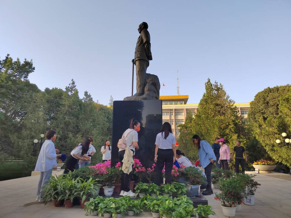 大家还重新摆放了王震将军像前的花盆,清理了道路、绿化带中的落叶和垃圾,不放过任何一个卫生死角,整个活动井然有序,分工明确,效率显著。经过大家的共同努力和辛勤劳动,红色文化广场的面貌焕然一新。