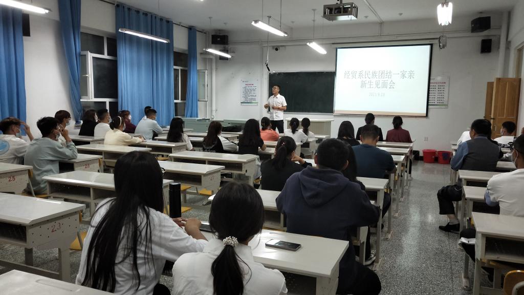 9月23日,经管院经贸系三进两联一交友新生见面交流会在综合楼313教室举行。经贸系全体教职工及来自疆内外的30多位少数民族学生与结亲教师欢聚一堂,进行密切交流。交流会由经贸系副主任张勇老师主持。