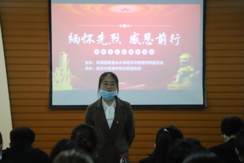 缅怀革命先烈,赓续精神血脉。4月5日上午,共青团塔里木大学经济与管理学院委员会在西十二楼社会主义核心价值观基地开展“缅怀先烈,感恩前行”清明缅怀先烈活动。学院团委副书记王春霞,辅导员张居一、岳东芹,团委学生会副部级以上、宿舍管理委员会楼长楼层长参加。