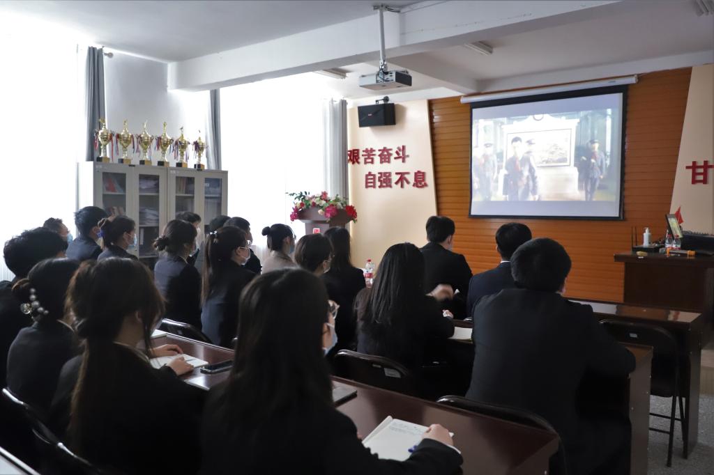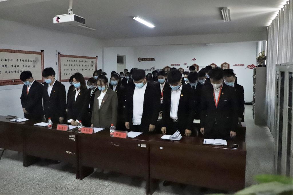 在雄伟高昂的国歌声后,全体师生肃立默哀以表敬意。默哀毕,学生代表铿锵有力的祭奠誓词响彻基地的每一个角落。本次活动采用“PPT宣讲+观看视频”的方式进行,从革命英烈到抗疫英雄,从青葱少年到白发苍苍,他们用生命换来如今的生活安宁。学生干部们表示将用坚定的信念和坚强的意志捍卫着烈士们的荣誉,用坚持不懈的努力传承烈士们的革命事业。学习活动后,大家一起重温入团誓词,并庄严承诺将努力学习,继承和发扬革命先烈的遗志,为祖国的建设和发展奉献自己的青春和热血。