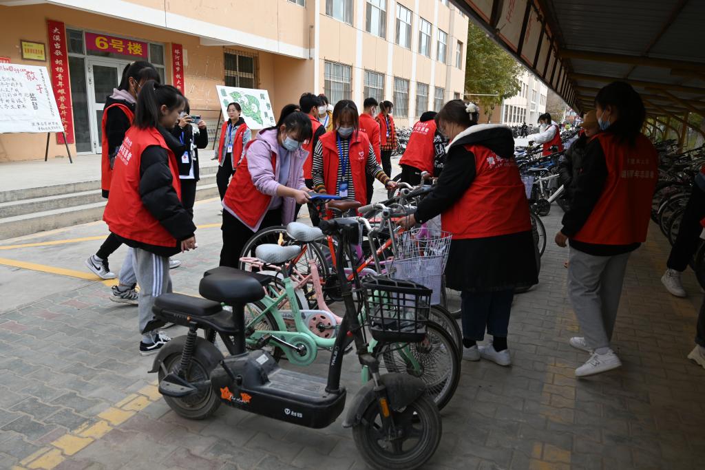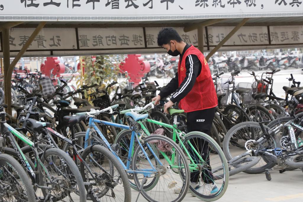 活动开始,志愿者们自带清扫工具,充分发扬志愿者积极奉献的精神,不怕脏、不怕累,积极清理车棚内灰尘垃圾,摆放车棚内车辆。经整治,车棚内卫生环境焕然一新。除此之外,志愿者们还排班在车棚区域对停车学生进行文明劝导,促使同学们养成良好的停车习惯。