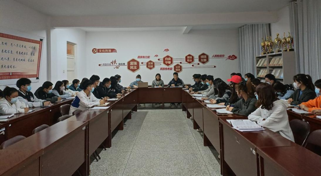 为深入学习贯彻全国“两会精神”,增强支部的凝聚力和战斗力,3月11日晚上,工商系学生党支部于西十2楼党团活动室通过“线上+线下”形式开展“学精神,强理论,忆初心,促发展”主题学习会。工商系学生党支部书记岳东芹、组织委员刘思宇、宣传委员吴卓娜,支部全体党员及20名入党积极分子参加,会议由刘思宇主持学习会。