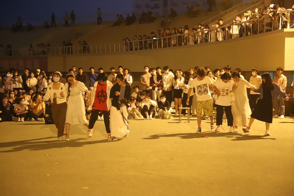 妙趣横生的两人三足游戏调动观众积极性,新老生和研究生们踊跃参与,晚会现场一片欢声笑语。