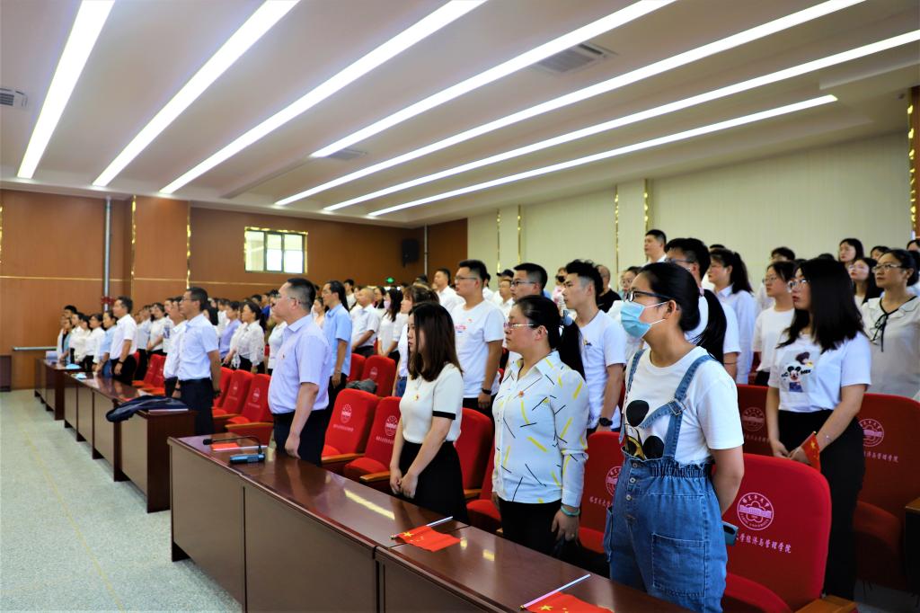 7月1日上午,经管院126名在校师生在文科实验楼报告厅504室集中观看了庆祝中国共产党成立100周年大会,全院2434名学生在祖国各地通过网络、电视等收听、观看了大会实况。