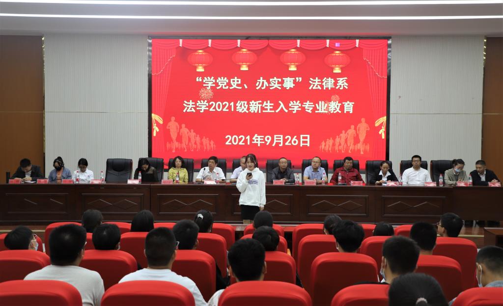 9月26日21:00,塔里木大学经管院法律系组织2021级新生于新文科楼报告厅504开展入学专业教育,法律系所有任课老师及2021级76名新生均参与了本次活动,活动由罗云方主持。