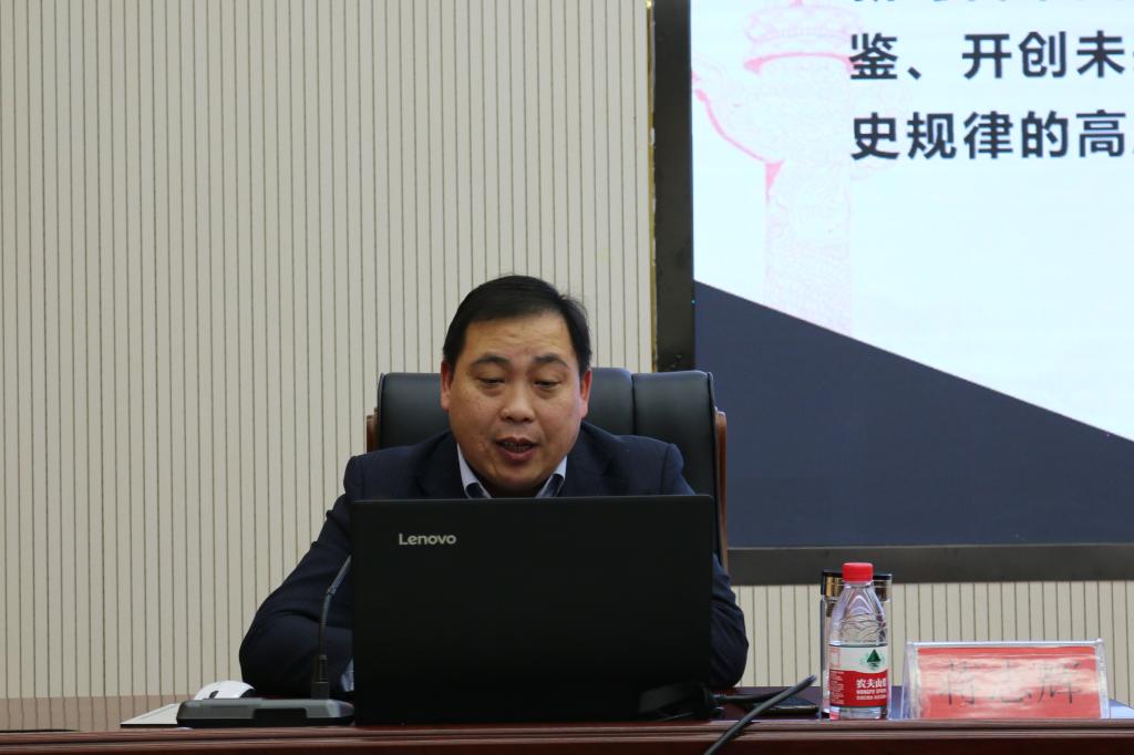 蒋志辉从深刻认识总结党的百年奋斗重大成就和历史经验的重大意义,深刻认识党的百年奋斗的初心使命和重大成就,深刻认识中国特色社会主义新时代的历史性成就和历史性变革,深刻认识党的百年奋斗的历史意义和历史经验,深刻认识以史为鉴、开创未来的重要求,从党的百年奋斗历程中汲取智慧和力量这六个方面,结合学院工作实际,作了系统解读和深入阐释。