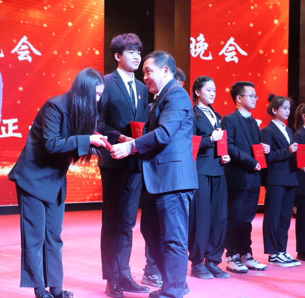 晚会演出期间,穿插了颁奖环节,学院党委副书记、院长蒋志辉,党委委员、经贸系党总支书记、工会主席朱哲,党委委员、科研与研究生办公室主任冯刚分别为国家奖学金获得者、宿舍文化建设优秀工作者进行了颁奖。(文/王春霞 吴婕 摄/姚鹏 贺叙森 陈昇颖 龙晓凡 封之秋)