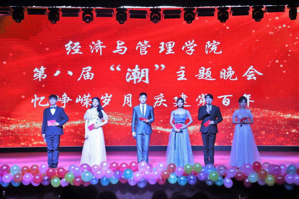 12月12日晚,经济与管理学院第八届“潮”主题晚会“忆峥嵘岁月,庆建党百年”在行政楼B座报告厅举办。晚会采取线上+线下相结合的形式开展,点赞量达10000余次。