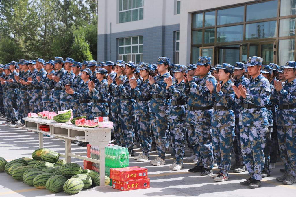 蒋志辉对教官们的辛勤付出表示衷心的感谢,并对参训学生饱满的军容、标准的军姿、整齐划一的动作表示肯定;他鼓励同学们再接再厉、团结一致、攻坚克难,发扬胡杨精神;赞扬同学们不畏酷暑、不惧艰辛、吃苦耐劳、以劳代训的坚毅品格。要求同学们严格执行学校对防疫的要求,在军训结束之后尽快离校,保护好自己,祝愿大家能够圆满的完成军训这门必修课。