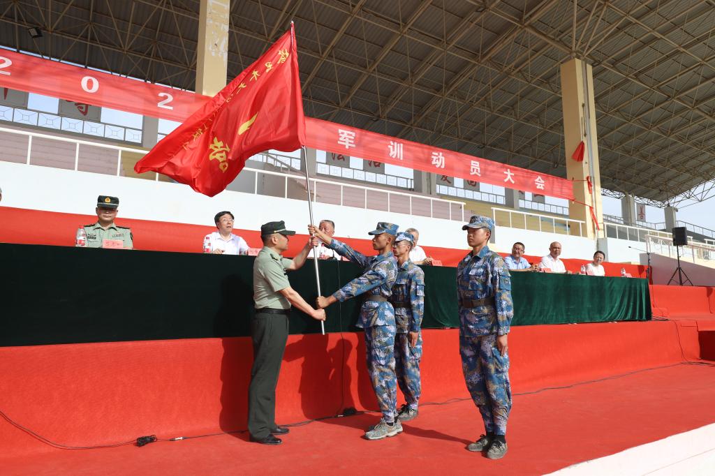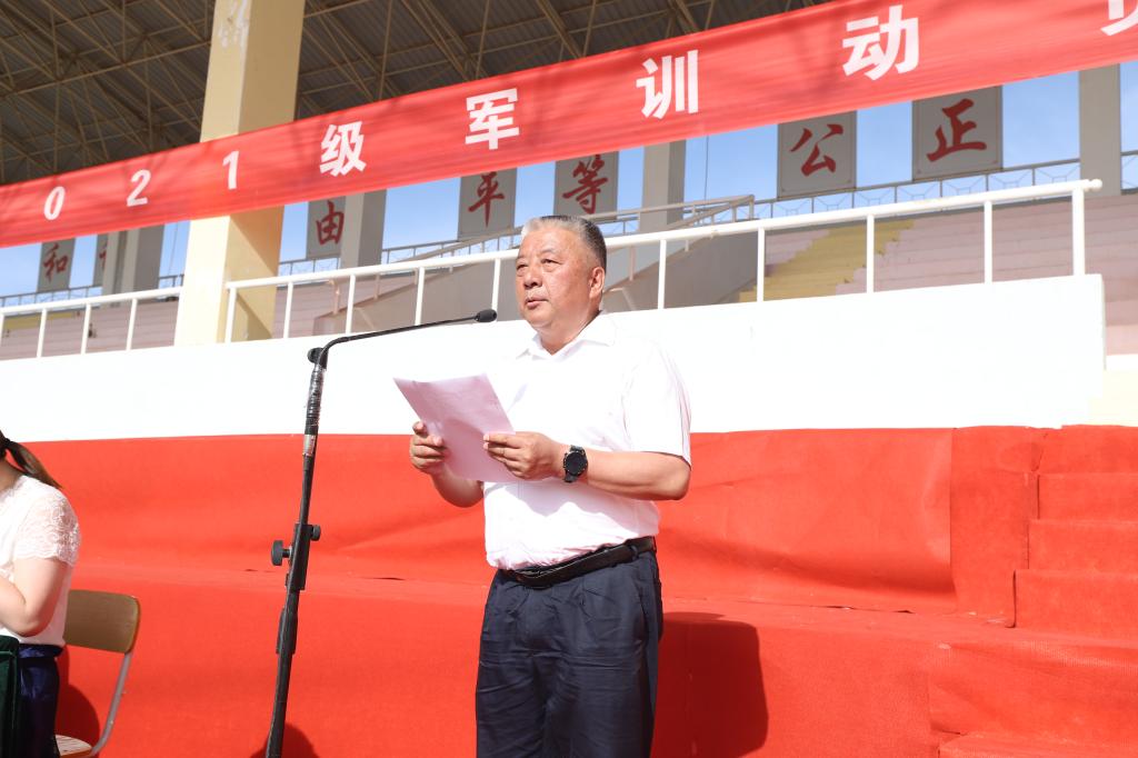 鲜衣怒马少年时,英雄儿女踏征程。6月16日早上,我校2021级学生军训动员大会在西区操场举行。出席本次动员大会的有党委副书记、纪委书记单洪山,党委常委、副校长曲义勇、赵峰华、石长青,阿拉尔市人民武装部部长吕志刚,党委保卫部部长朱夺宝,经管院党委副书记、院长蒋志辉,教务处处长弋晓康,党委宣传部部长王志刚,党委学生工作部副部长陈蕾,经管院党委副书记谷建杰,全体承训教官、助训辅导员以及我院600余名参训学生。会议由朱夺宝主持。