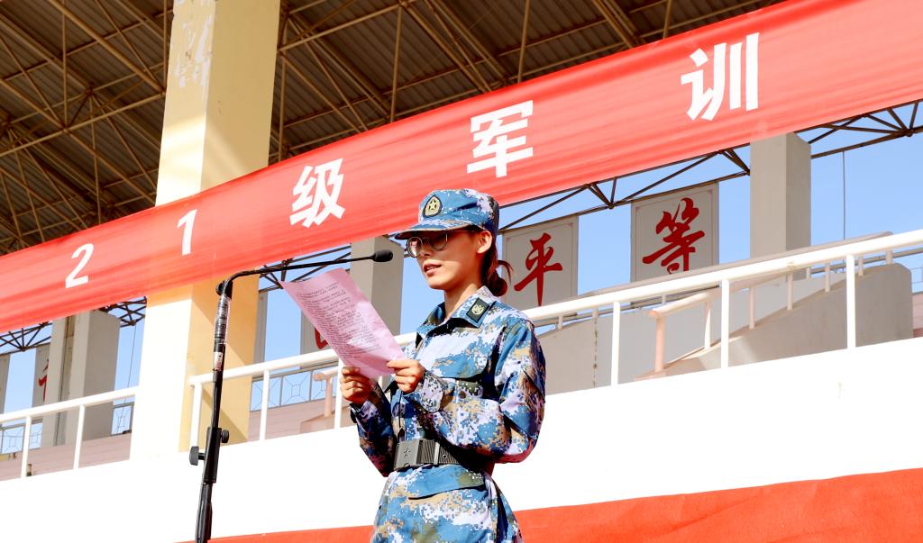 参加训练的工商管理类2021级7班的刘蕴郭说道:在军训中会服从纪律、听从指挥、认真训练,团结友爱,互帮互助。发扬我校“艰苦奋斗,自强不息,扎根边疆,甘于奉献”的胡杨精神。与祖国同行,与时代同进。