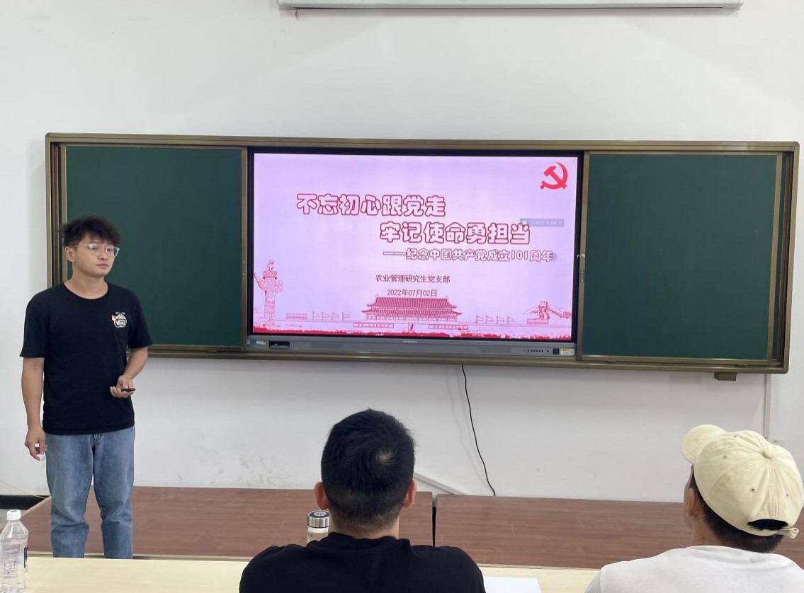 为庆祝中国共产党成立101周年,喜迎党的二十大,农业管理研究生党支部于7月2日在新文科楼404室开展了“党旗映天山”主题党日活动。