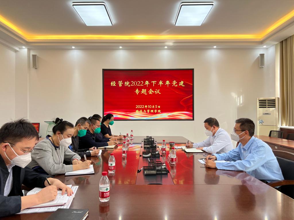 10月6日,经济与管理学院2022年下半年党建专题会议在学院209会议室召开,学院党委书记蒋志辉,党委副书记、纪委书记朱哲出席。学院各党总支书记、教工党支部书记、党政办(党建办)公室主任参加。会议由蒋志辉主持。