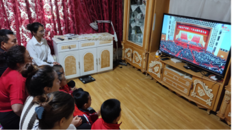 支部党员阿力米热·艾尔肯与家人一起同观看直播盛况