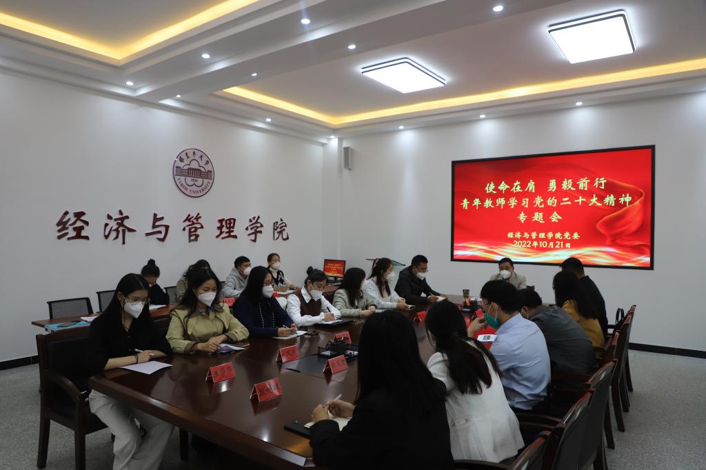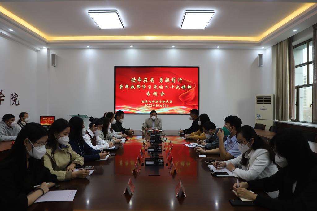 为贯彻学习党的二十大报告精神,引导青年教师坚定不移听党话、跟党走。10月21日,经济与管理学院召开青年教师学习党的二十大精神专题会。学院19名青年教师代表参会,会议由学院党委书记蒋志辉主持。