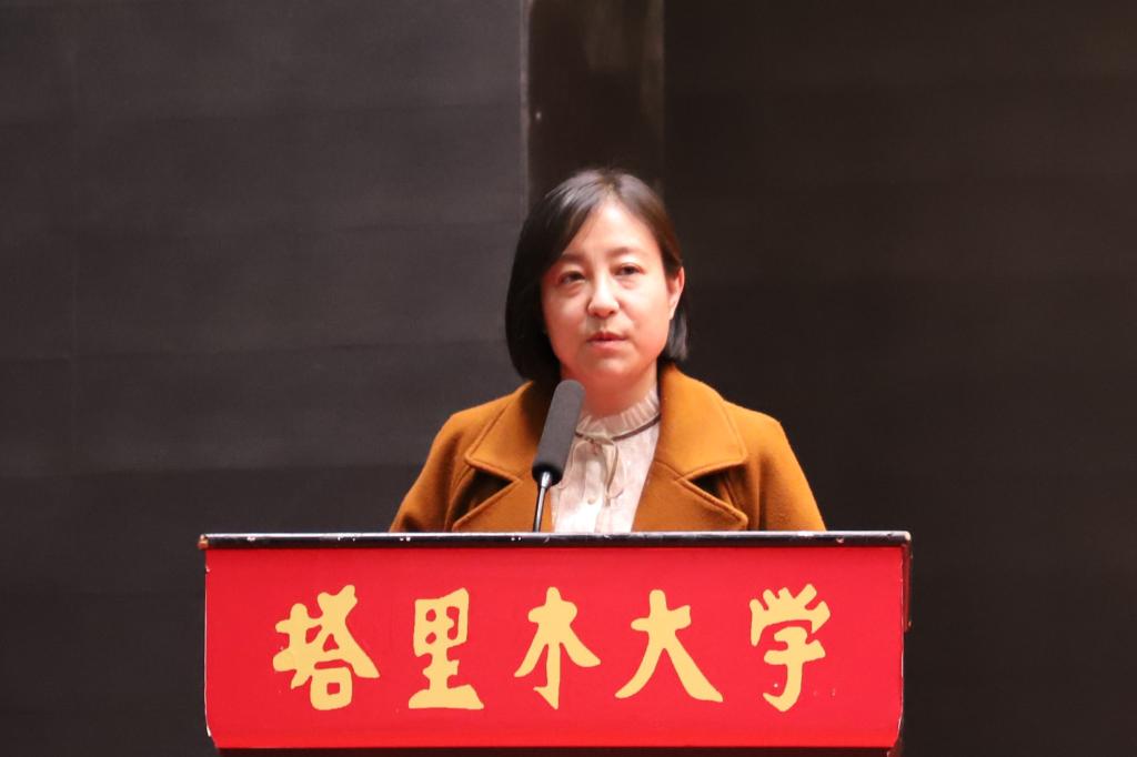 教师代表研究生导师霍瑜教授表达了自己的期望。她语重心长地向新生们提出要做到生活有规律、有计划;讲诚信、重礼仪、有修养;要充实并有意义地度过接下来四年的大学生活。老师们会秉承“用胡杨精神育人、为兴疆固边服务”的教学理念,“传道、授业、解惑”成为你学业上称职、合格的导师,努力成为你们生活中的朋友。
