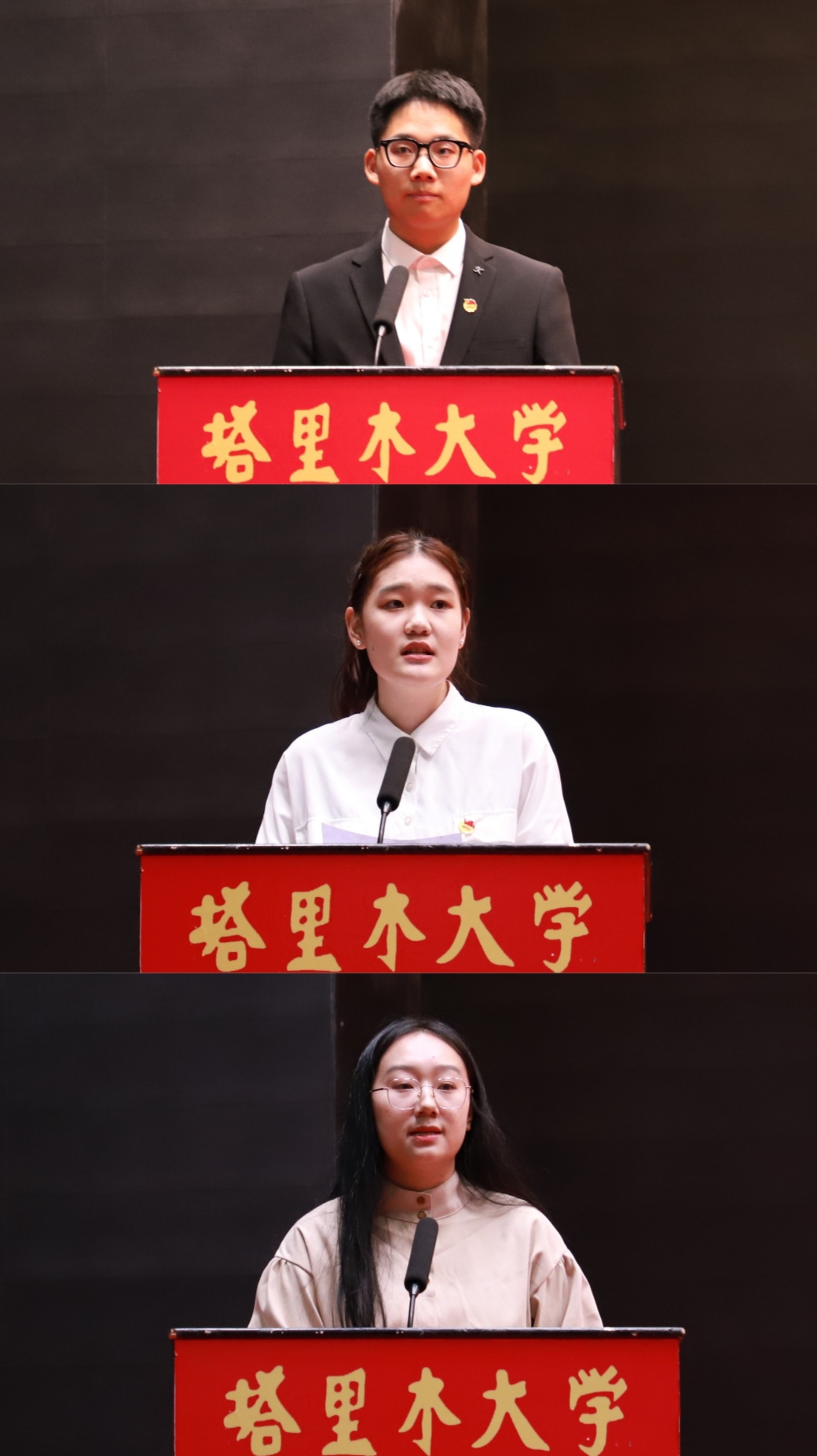 我院学生会主席旅游管理2020级1班王鹏驭代表全体老生发言,希望学弟学妹们抓好学习,合理分配时间,逐个实现自身目标。农业管理2022级付玮代表全体研究生发言,表示无论前路多么艰辛,我们都会坚守学术诚信、维护学术尊严、摒弃学术不端行为,努力成为优良学术道德的践行者和良好学术风气的维护者。工商管理类2022级6班高丽容代表全体新生发言,并表示决不辜负学院领导、老师、学长学姐对他们的期望。