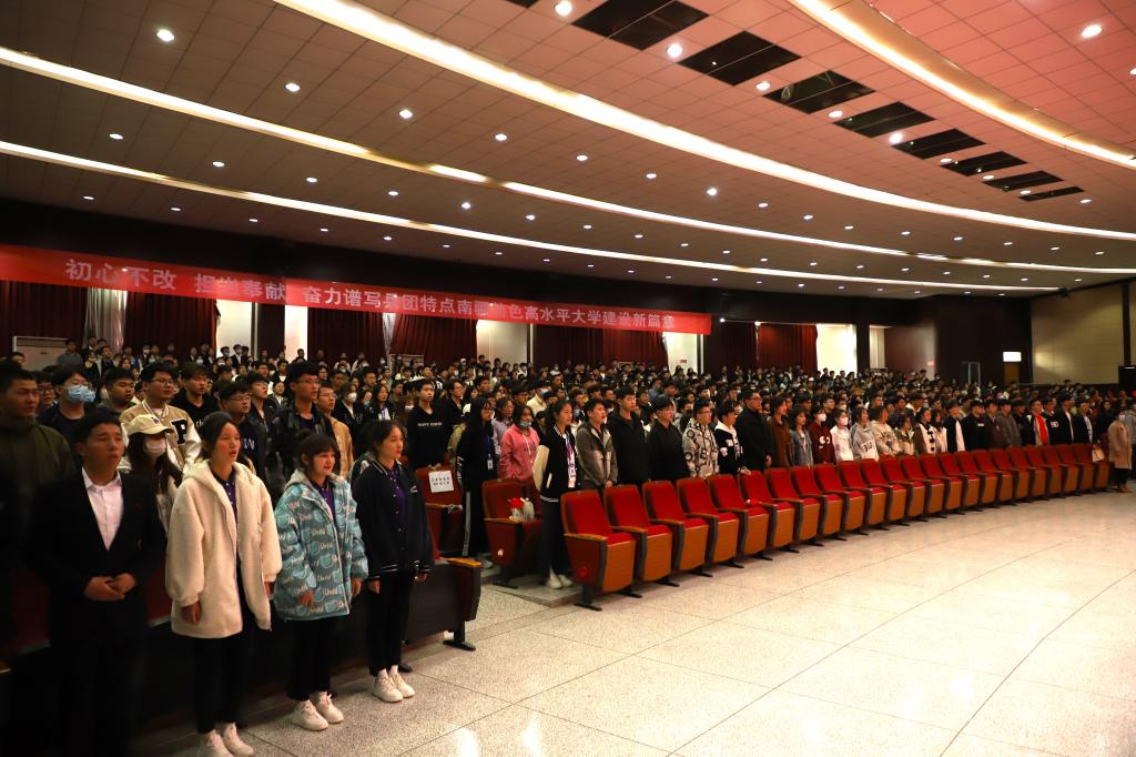 3月1日下午,经济与管理学院2022级新生开学典礼在文科楼报告厅B座隆重举行,学院党委书记蒋志辉、院长王学剑、副院长晁伟鹏出席。各系系书记、办公室主任、辅导员、新生班主任、教师代表、在校生代表及2022级新生共900余人参加了开学典礼。典礼由晁伟鹏主持。