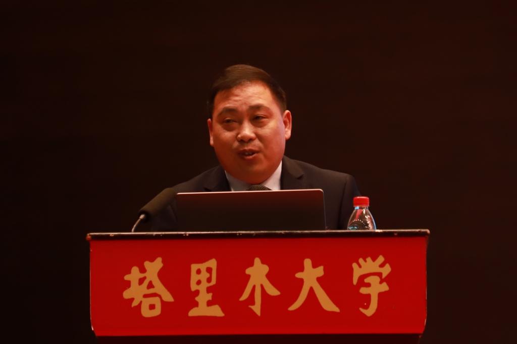 院长王学剑代表全体教职员工对22级新生表示热烈的欢迎,并介绍了学院的基本情况、发展目标及定位,同时也对同学们提出了几点希望:一是坚定理想信念,铸牢信仰之基,做爱国爱疆、担当奉献的塔大人;二是练就过硬本领,担当时代重任,做求真务实、善作善成的塔大人;三是笃行不怠,奋楫争先,做踔厉奋发、敢于创新的塔大人。
