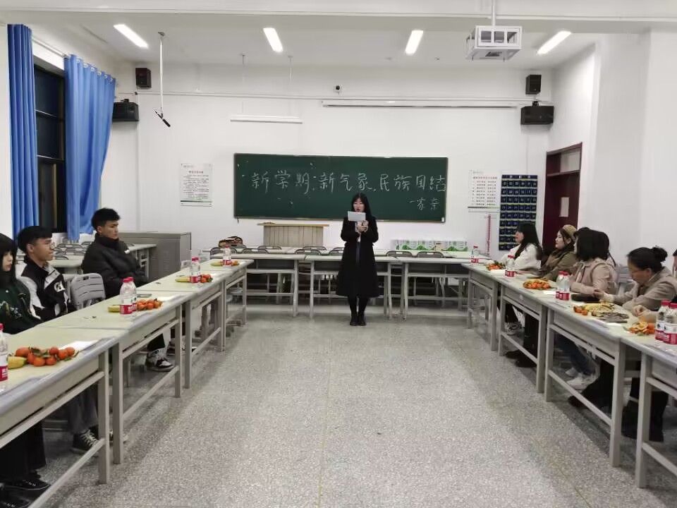 3月4日,新学期第一个周末,为增进相互了解,增强师生情谊,加强民族团结,旅游管理系教师和各自结亲同学在新文科楼105举办联谊活动。