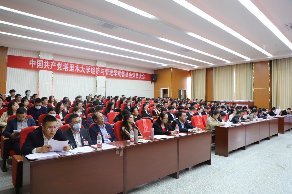 3月26日下午,中国共产党塔里木大学经济与管理学院委员会第二次党员代表大会在文科实验楼504报告厅举行。大会以习近平新时代中国特色社会主义思想为指导,深入贯彻学校第二次党代会决议,持续落实全面从严治党要求,积极推进基层党组织建设和领导班子建设。学院党委书记蒋志辉,学院党委副书记、院长王学剑,学院党委副书记、纪委书记朱哲,学院党委委员、副院长晁伟鹏出席,全体正式党员、列席代表、教师代表共143人参加。开幕式由学院党委书记蒋志辉主持。