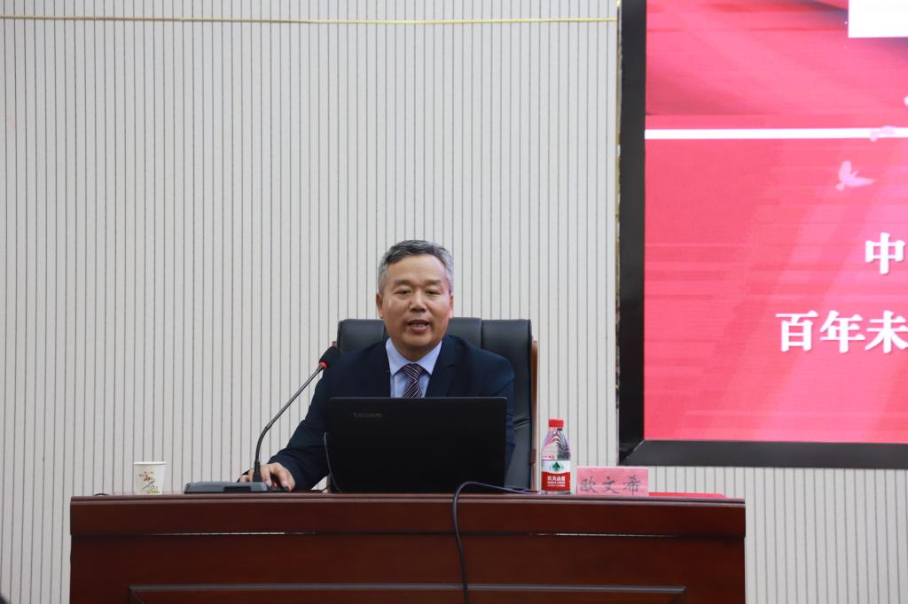 欧文希从习近平新时代中国特色社会主义思想如何创立、历史地位、主要包含哪些内容、回答了什么重大时代课题、如何把握习近平新时代中国特色社会主义思想的世界观和方法论等方面作了细致讲解。