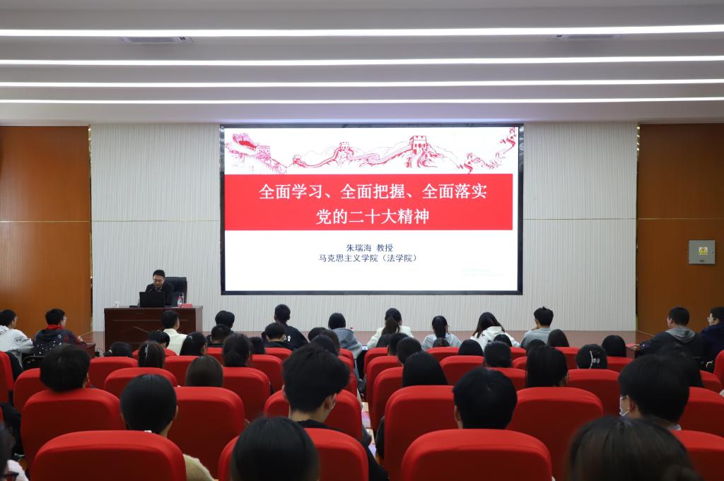 4月23日,学院第73期入党积极分子培训班特邀马克思主义学院(法学院)教授朱瑞海为培训班全体学员讲授“全面学习、全面把握、全面落实党的二十大精神”专题党课。