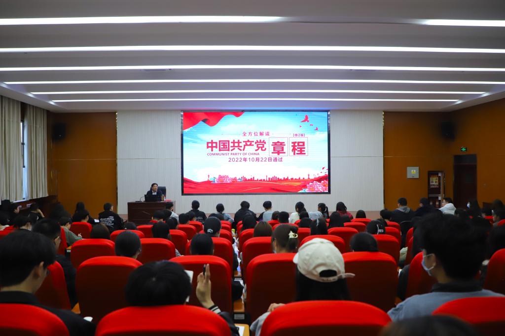 为学习贯彻习近平新时代中国特色社会主义思想主题教育,教育引导全体学员对照党章党规找差距,4月23日,学院党委副书记、院长王学剑为积极分子培训班全体学员讲授中国共产党章程专题党课。