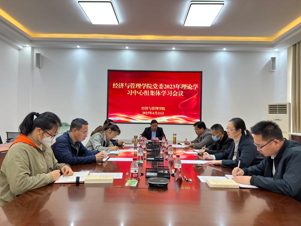 4月21日下午,经管院党委召开理论中心组集体学习会议,学院领导班子成员参会。会议由学院党委书记蒋志辉主持,在文科实验楼209会议室召开。