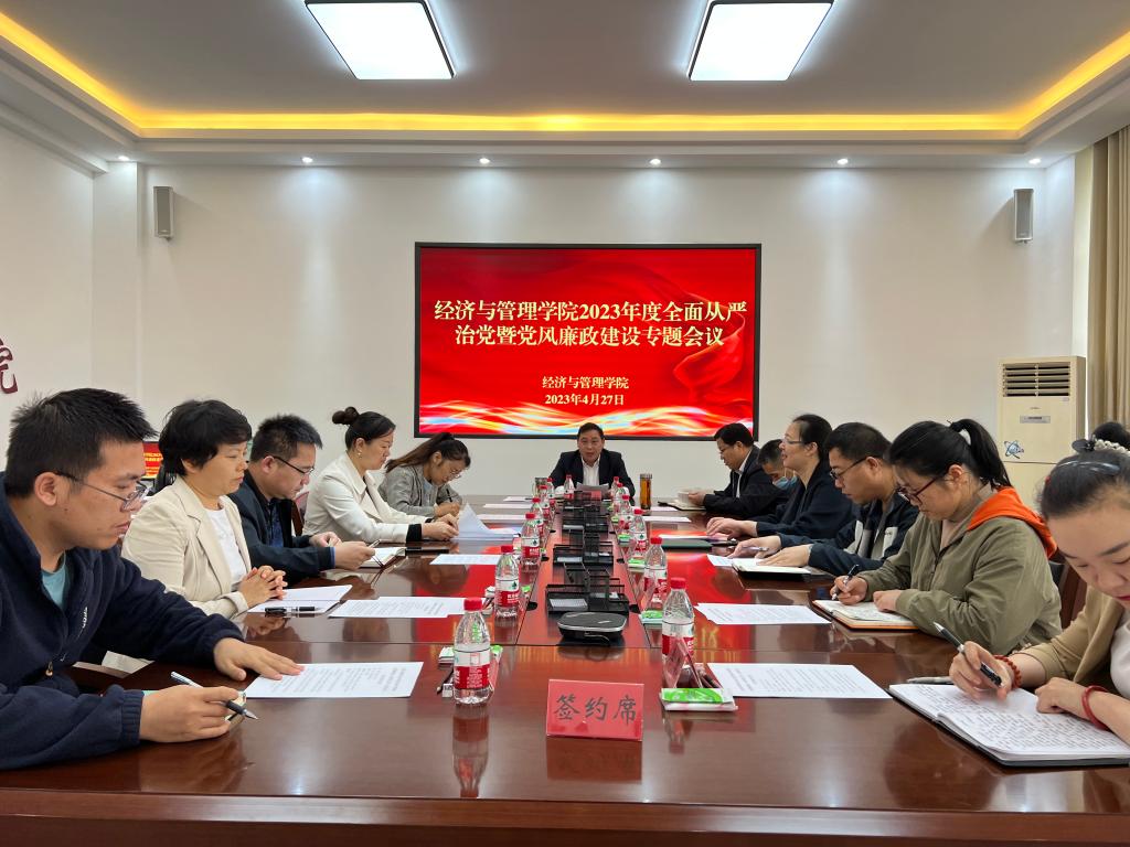 为学习贯彻习近平新时代中国特色社会主义思想主题教育,落实学院全面从严治党主体责任,推进学院党风廉政建设工作,4月27日上午,学院党委召开2023年度第一次全面从严治党暨党风廉政建设专题会议,会议由学院党委书记蒋志辉主持,学院领导、党委委员、纪委委员、各党总支书记、系主任、办公室主任、实验中心主任、团委副书记参加会议。