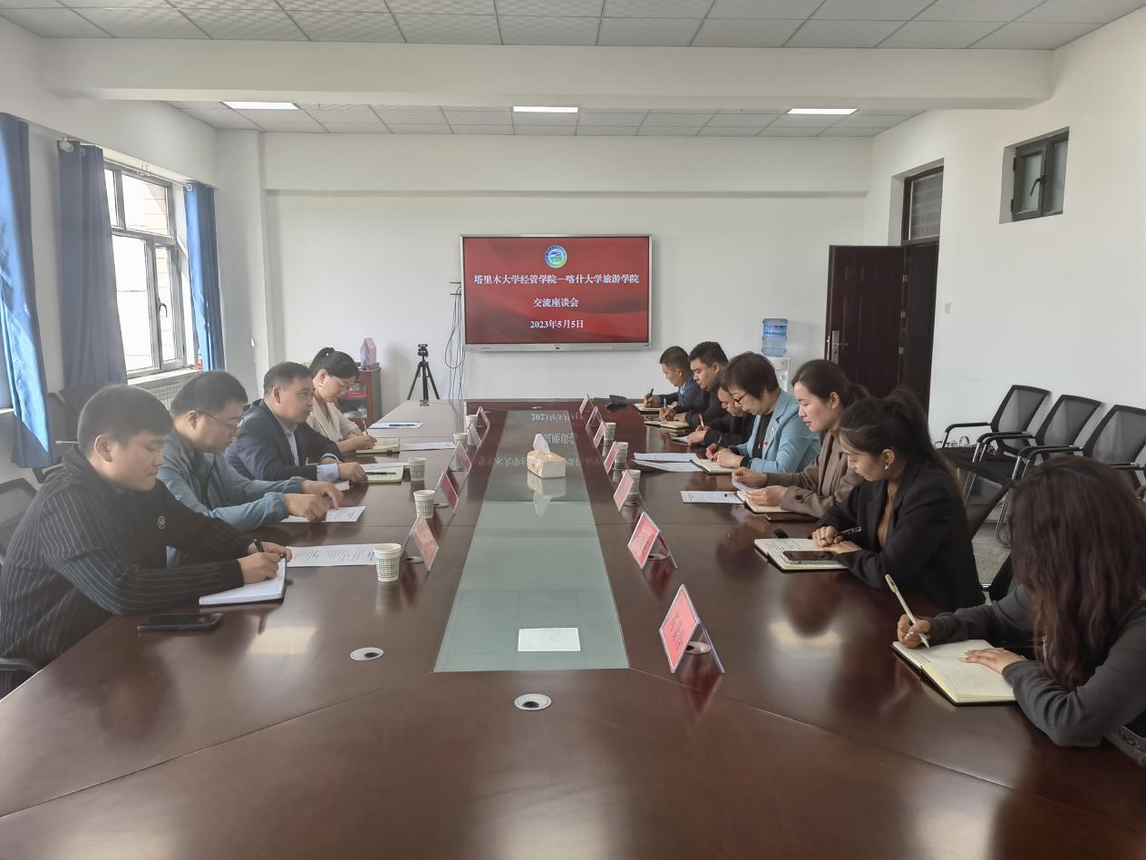为促进旅游管理国家一流专业同疆内高校的交流,学院党委书记蒋志辉率队访问喀什大学旅游学院,受到喀什大学旅游学院党委书记刘秀明、副院长贾巧云等领导的热情接待,双方围绕院院合作、人才队伍建设、本科教育、科学研究与平台、学科建设、基地建设等进行了热烈研讨。