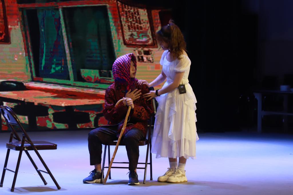 学院压轴登场上演作品《双面镜》,共16人呈现。舞台上绚烂的灯光与演员们精彩纷呈的情感表达相辅相成,每一幕情景剧所传达出的深刻内涵,以及每一帧感情的流露都给在场观众及评委留下了深刻印象。