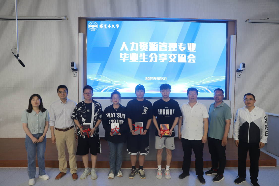 最后,所有人力资源管理专业教师为毕业生代表颁发奖励并合影留恋,本次人力资源管理专业毕业生分享交流会圆满结束。