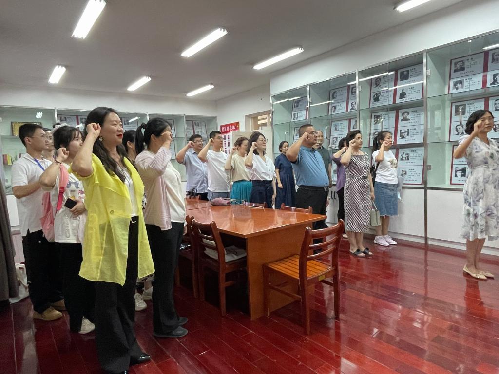最后,在校史馆2楼,谢霞副书记带领在场党员重温入党誓词。