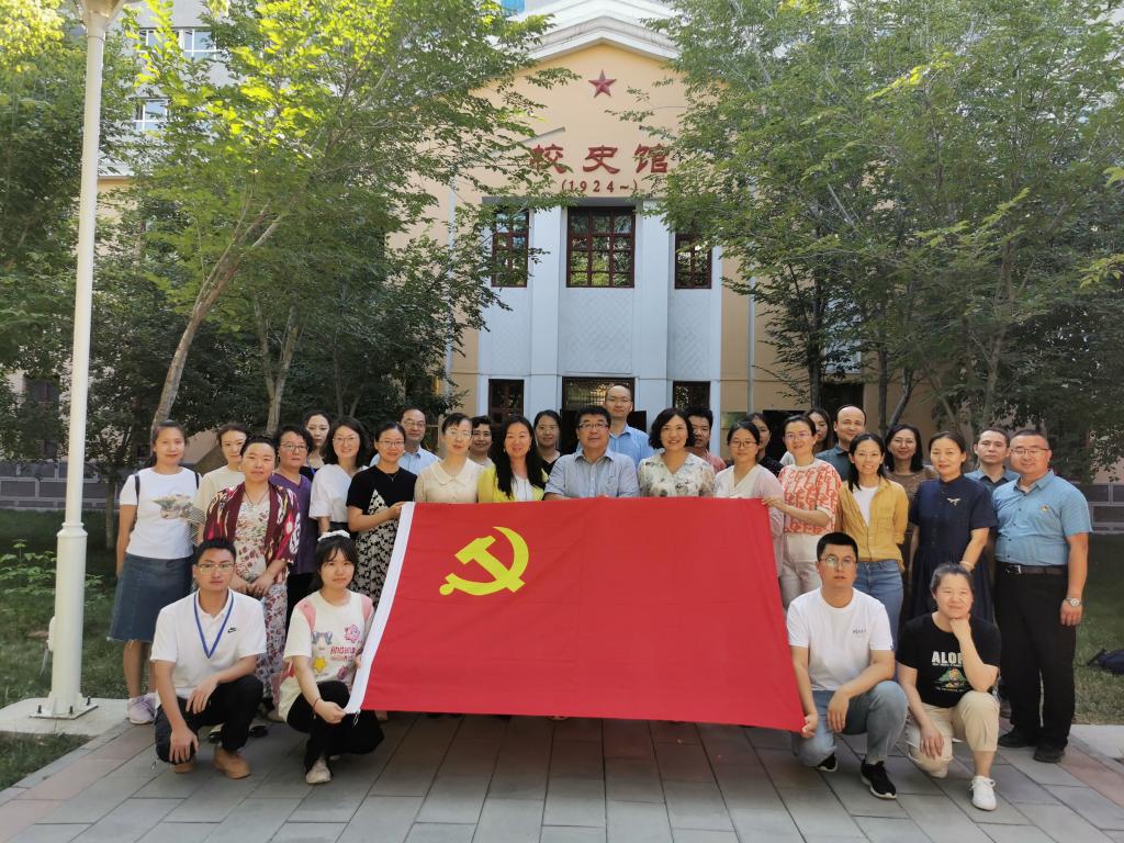 随后,新疆大学旅游学院教工党支部党员和塔里木大学经济与管理学院旅游管理系党支部党员步行前往新疆大学校史馆,一同参观了“流金岁月”“红色传承”“坚守阵地”“笃志耕耘”“砥砺前行”“情系新大”等主题展厅,了解了新疆大学自1924年以来筹建、合并、搬迁和美化的发展历程。