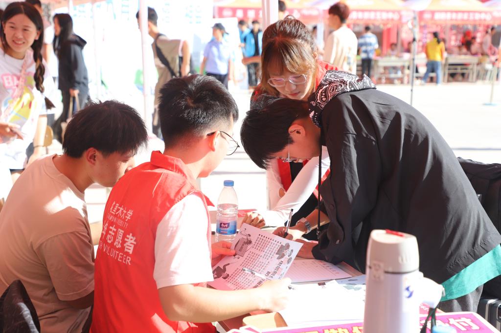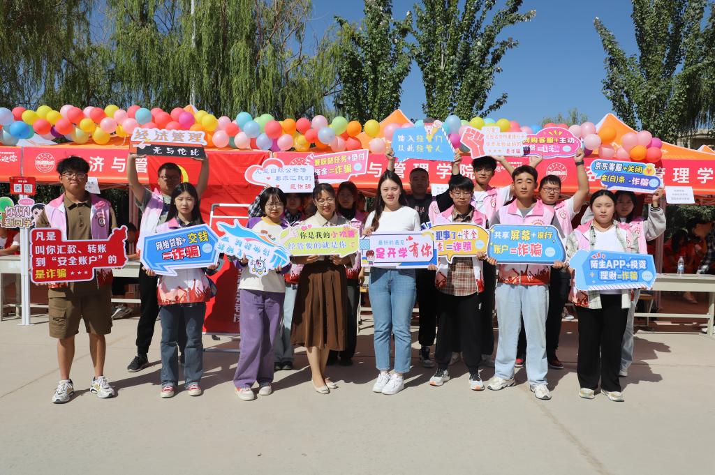 在迎新现场,学院辅导员老师和学生志愿者拿着“反诈”手牌进行反诈宣传,让新生对于预防电信诈骗有了一定的了解,在日常生活中提高反诈意识。
