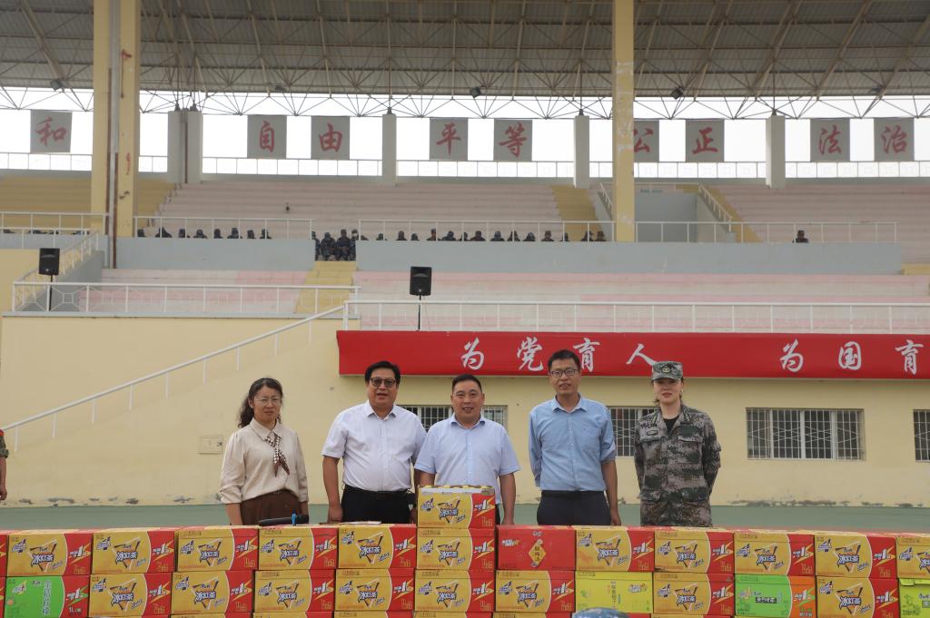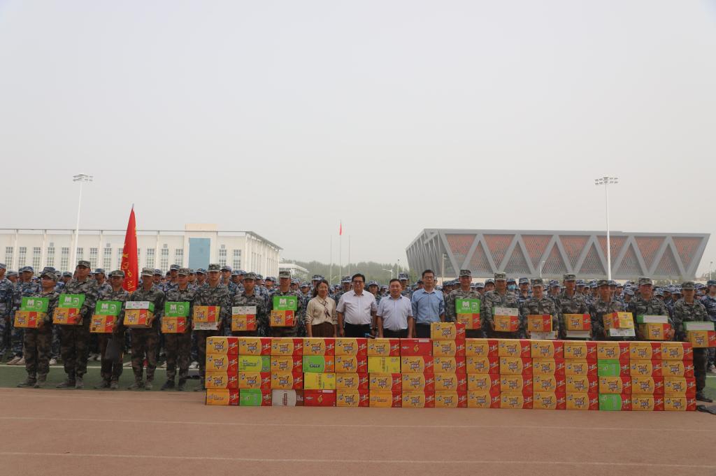 学院领导来到现场与军训教官和学员进行了亲切交流,并为他们送上酸奶、冰红茶等暖心慰问品,鼓励同学们以更好的状态投入到新一轮的训练。