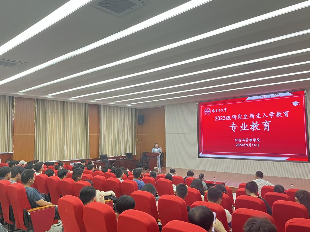 为了加强2023级研究生的专业素养,做好研究生的学习和科研规划,经济与管理学院于9月14日下午在文科实验楼报告厅504开展研究生专业教育,会议邀请了银龄教师王礼力教授、研究生导师,本次会议由经济贸易系主任苏旭峰主持。