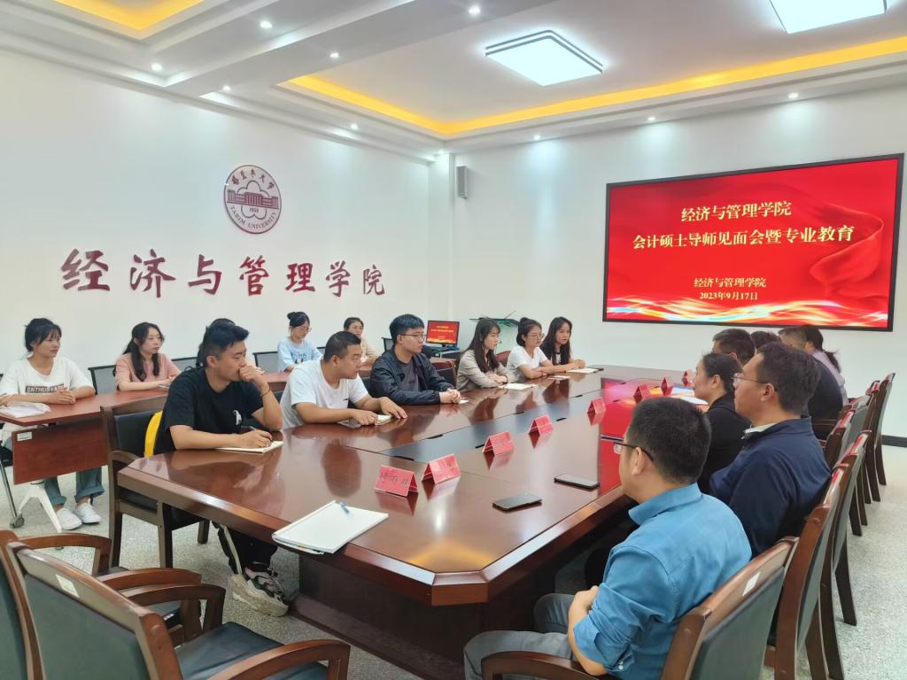 9月17日下午,经济与管理学院会计硕士研究生新生导师见面会在文科实验楼209举行。会计硕士导师组和2023级MPAcc全体新生出席见面会。见面会由学院财会系主任、会计硕士点负责人黄德霞主持。