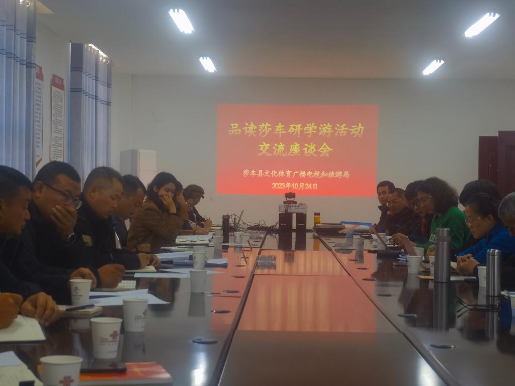 最后,团队一行参加了品读莎车研学游活动交流座谈会,莎车县人民政府副县长高悦明 ,文化体育广播电视和旅游局党组成员、副局长高强及其他相关部门领导出席座谈会。旅游管理系系主任李俊,旅游管理系副教授杨洁明对本次活动主办方、承办方表达了诚挚的感谢,并就莎车县研学旅游资源开发与旅游产品设计进行了发言,探讨研究莎车历史文化线索和故事,开展研学旅游产品设计、挖掘历史遗迹及莎车红色文化等。此次活动为拓展课堂实践教学、研学案例研究提供丰富素材,也为学院服务南疆经济社会发展提供了契机。