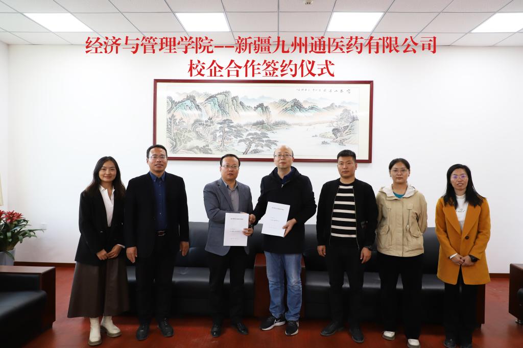 为学习贯彻习近平新时代中国特色社会主义思想,促进人力资源管理一流本科专业高质量发展,11月2日下午,经济与管理学院与新疆九州通医药有限公司在新文科楼会议室签署校外实习基地协议。