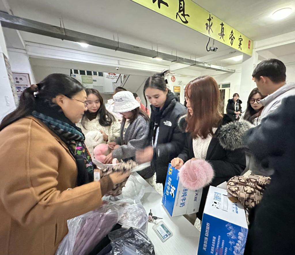 小雪是冬季的第二个节气,雪小,未有积雪,但冬令已成,阳气深潜,草木凋零,动物蛰藏,而大地冰封只是大自然在为来春万物勃发积蓄力量。全体教师借回顾中国二十四节气中蕴含的中华民族智慧送上手套、耳套等冬季保暖物品,表达对学生的殷殷关怀;学生们喜笑颜开,为教师们贴心的准备而倍感温暖;最后,全体教师衷心希望各位同学蛰伏于知识探究中,传承中国传统文化,充分利用大学时光,获取知识,拓展能力,提升素质,静待厚积薄发。