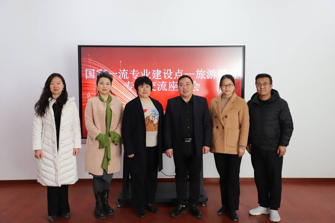 会上,双方共同观看了塔里木大学经济与管理学院20周年宣传片,了解了乌鲁木齐新丝路旅行社有限公司的经营历程及其与经管院的合作。蒋志辉对杨乔一行来院交流表示欢迎和感谢,回顾了双方校企合作历程,介绍了塔里木大学“用胡杨精神育人、为兴疆固边服务”的办学特色,分析了南疆旅游业发展及专业人才培育的机遇和前景。杨乔介绍了新丝路旅行社的企业文化,旅行社渡过困难期后,当前业绩已达到2019年水平,因借助国家战略机遇,拓展国内外旅游市场和开发乡村振兴专题市场,亟需与塔里木大学旅游管理专业在人员培育、产学研等方面深入合作。双方与会者就具体合作领域展开交流沟通并合影留念。
