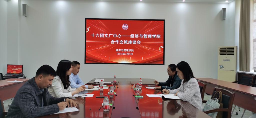 4月9日上午,为促进十六团文旅项目开展和经管院旅游管理专业发展,学院与十六团文广中心在文科实验楼209室召开“十六团文广中心——经济与管理学院合作交流座谈会”。经济与管理学院党委书记蒋志辉,第一师十六团四级调研员赵秀丽、文广中心周静出席交流活动,旅游管理系部分教师参加了会议。